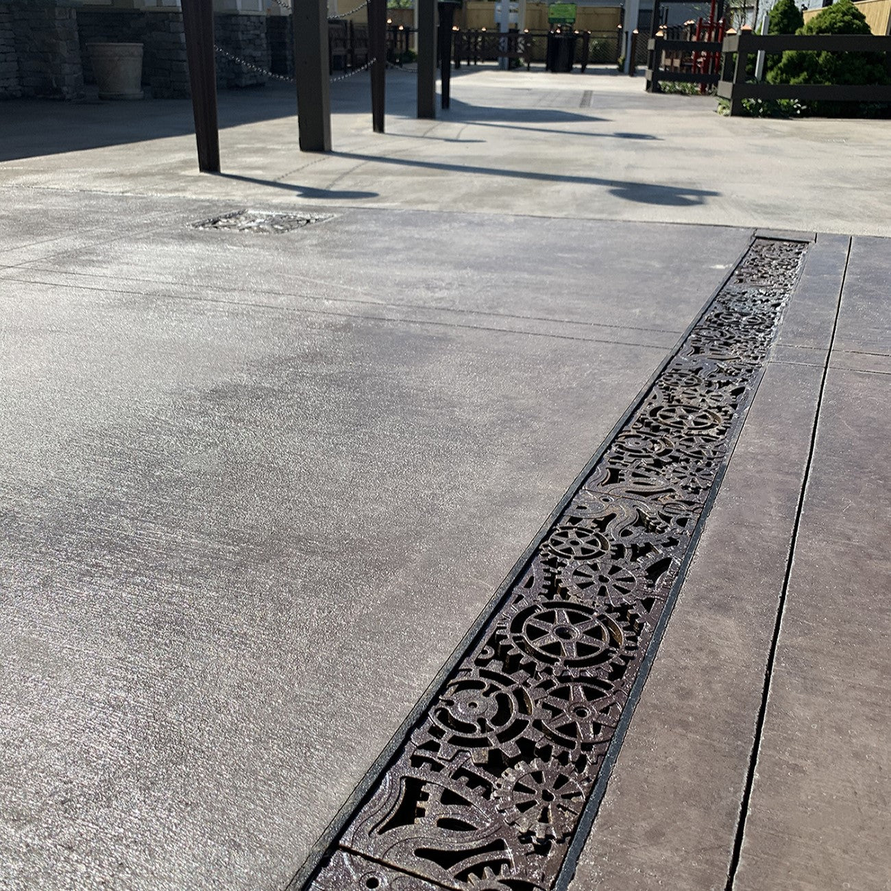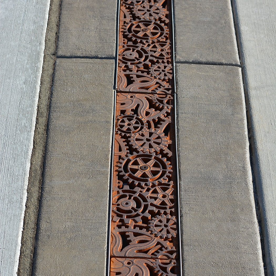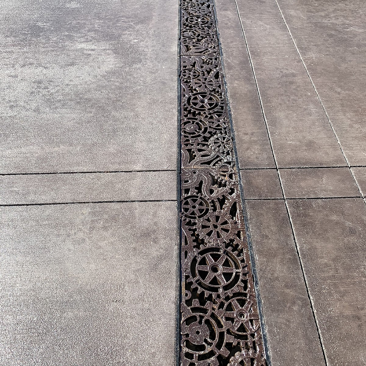 The lively, interlocking gear design of our Dynamo Trench Grate adds an energising element to any hardscape environment.