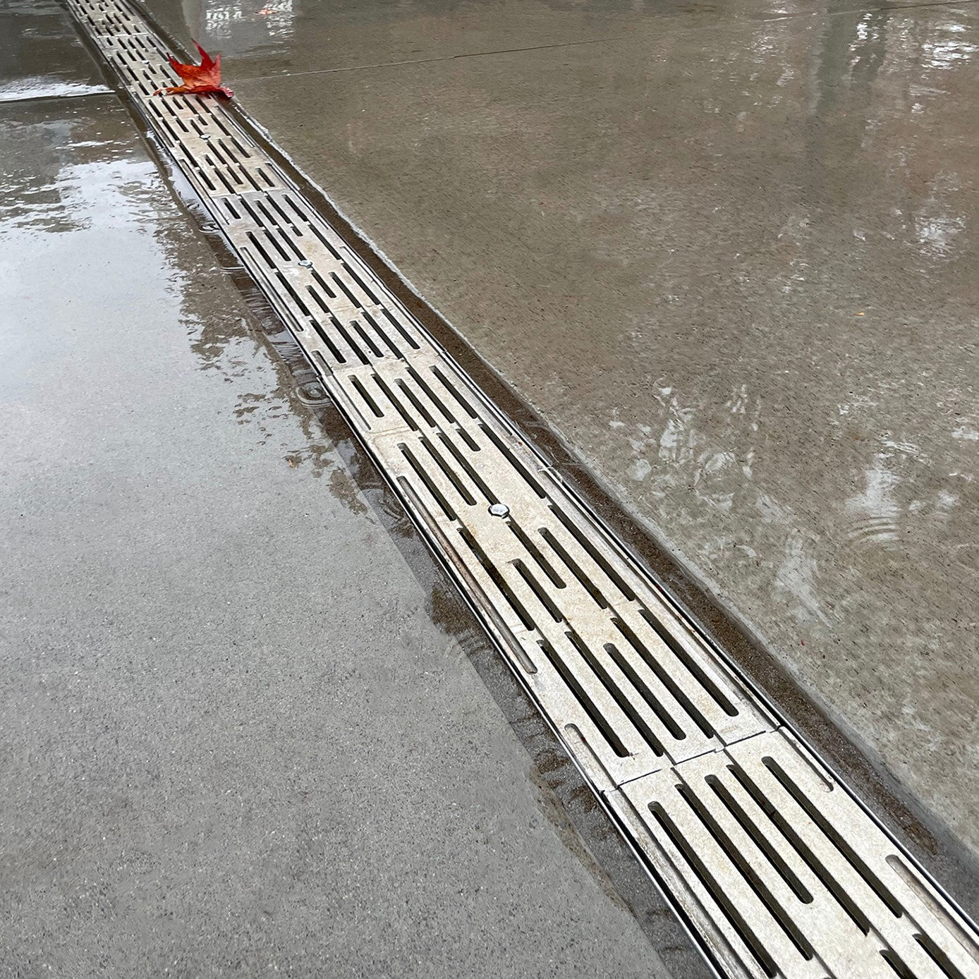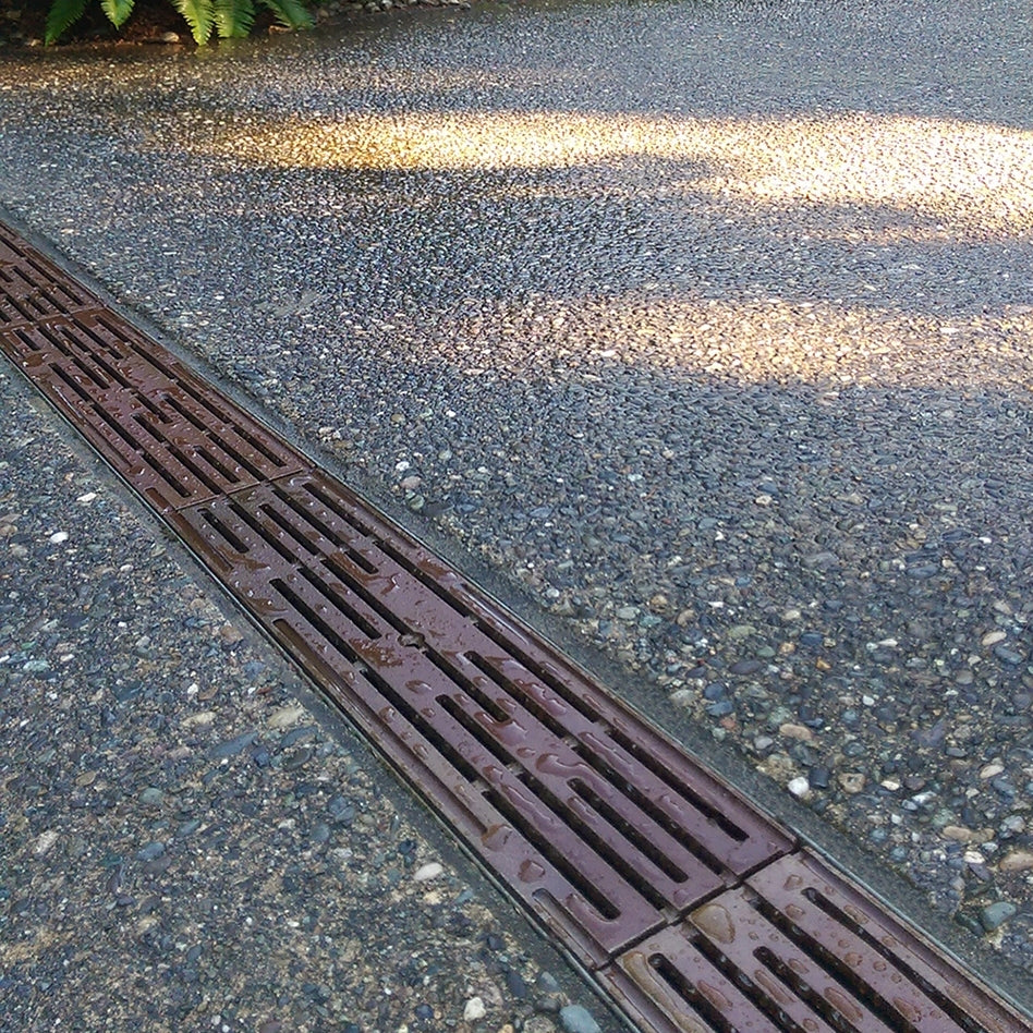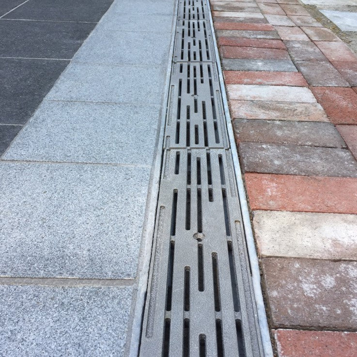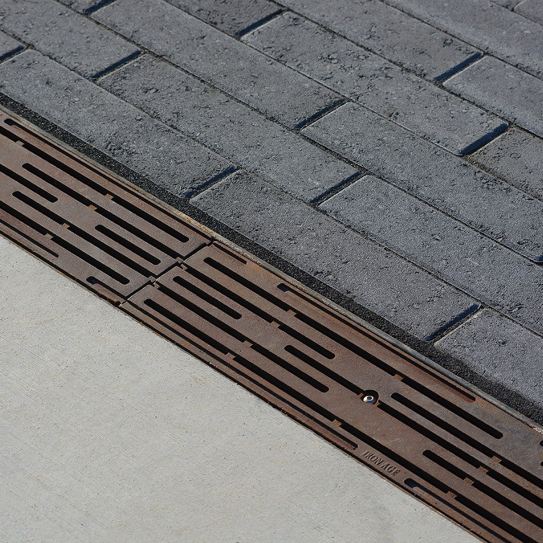 Intermittent breaks in the linear surface not only evoke the precipitation our little isle is famous for, but give our Rain grates a clean, sophisticated look and heel-proof design.
