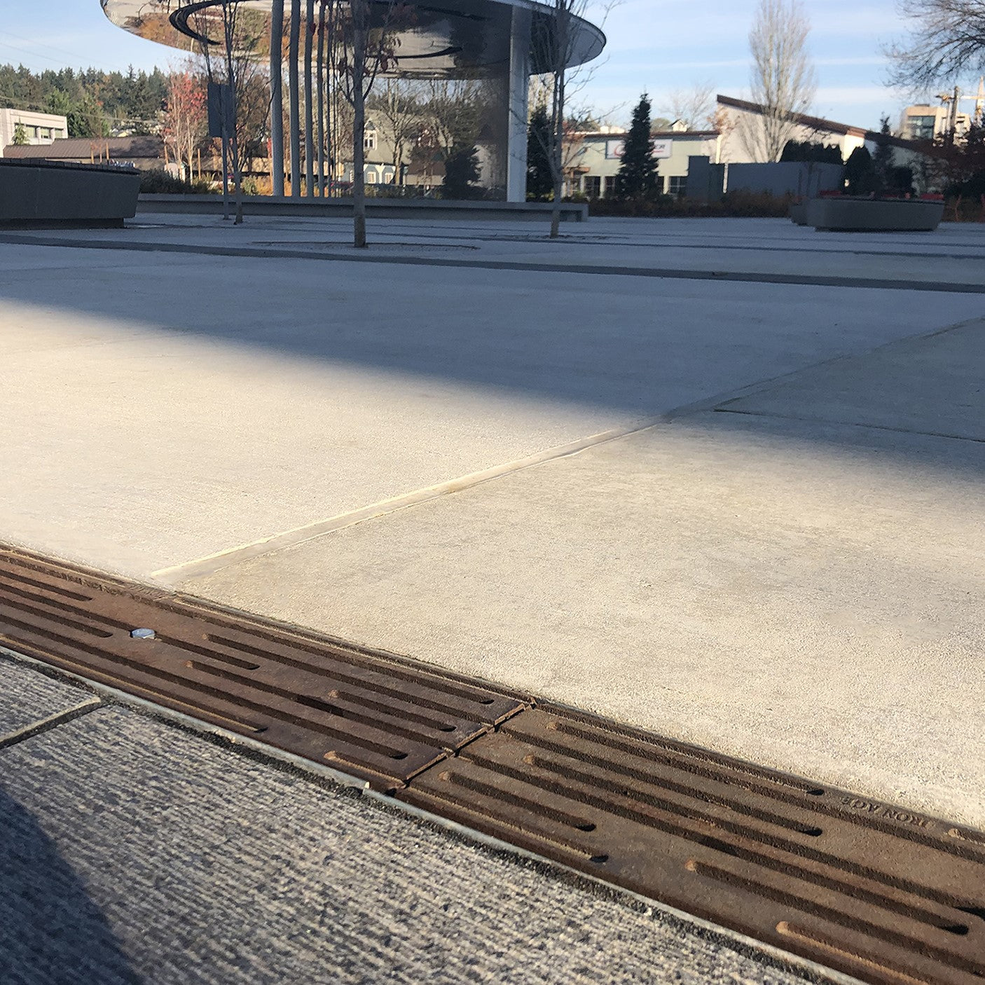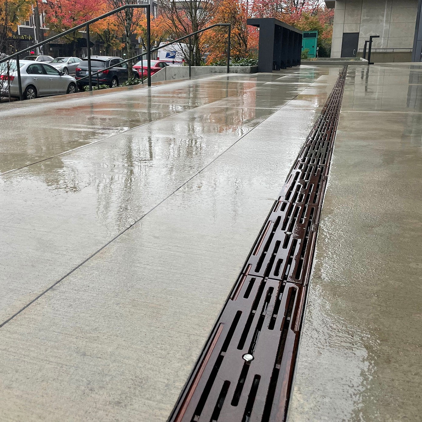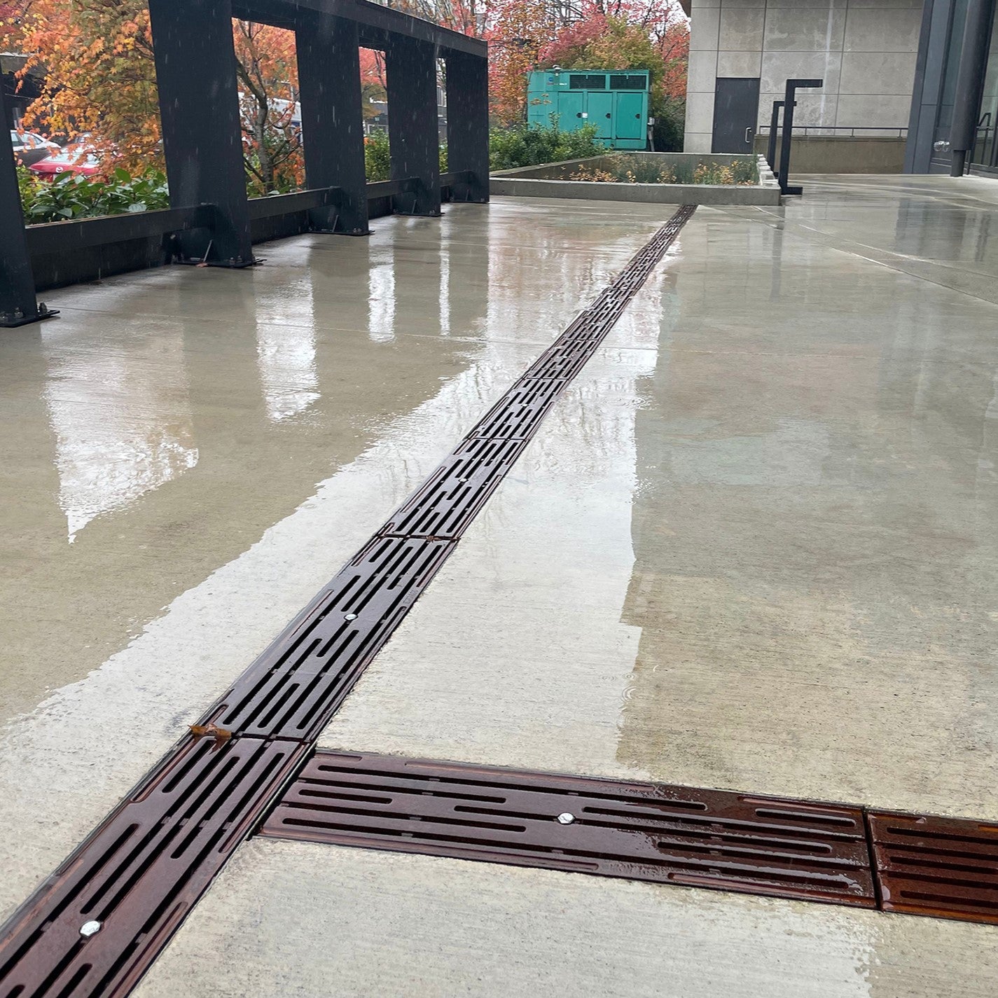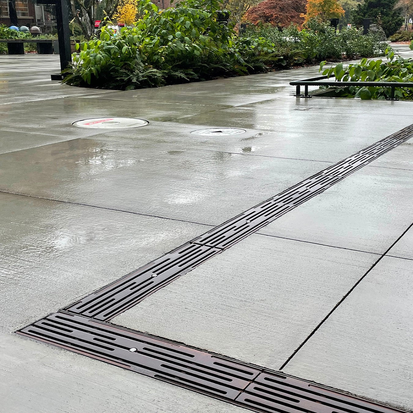 Intermittent breaks in the linear surface not only evoke the precipitation our little isle is famous for, but give our Rain grates a clean, sophisticated look and heel-proof design.